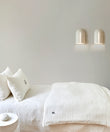L'édredon assorti à ses deux taies d'oreiller crée un ensemble harmonieux et élégant pour votre chambre à coucher, alliant style et confort en parfaite symbiose. Cette combinaison donne une belle finition au lit, ajoutant une touche finale parfaite à votre espace de sommeil. * Choisissez la Broderie ELO (Mini) ou la broderie HAN (Maxi). Taies d’oreiller: 50 cm x 70 cm.